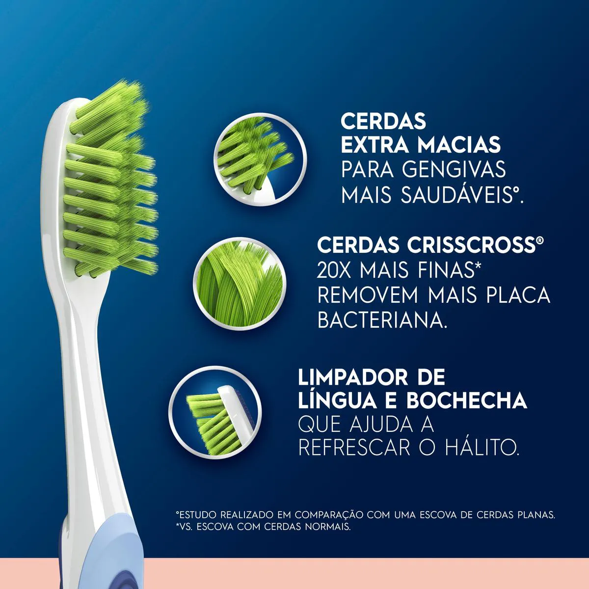 A escova de Dente Oral-B Gengiva Detox Ultrafino possui cerdas ultrafinas e cruzadas, 20x mais finas do que as cerdas comuns. Elas limpam profundamente a linha entre os dentes e a gengiva, com maciez e sem machucar.