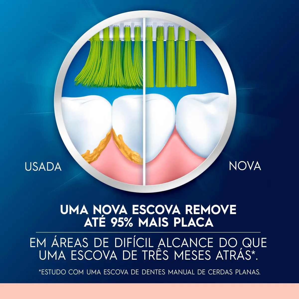 Possui também ângulo personalizado para alcançar as áreas de difícil alcance na boca. É a opção ideal para você e toda a família cuidarem dos dentes e prevenirem a placa, limpando até onde as outras escovas não alcançam e ajudando a deixar as gengivas saudáveis.