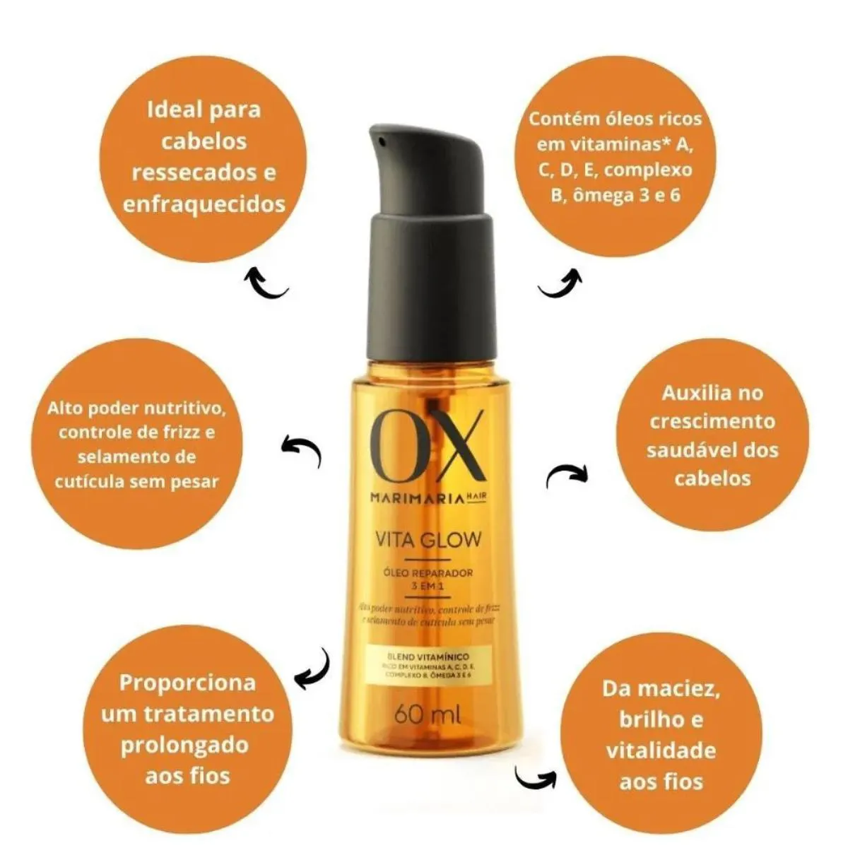 Ox Vita Glow Hair Mari Maria Óleo Reparador 3 em 1 - 60 Ml