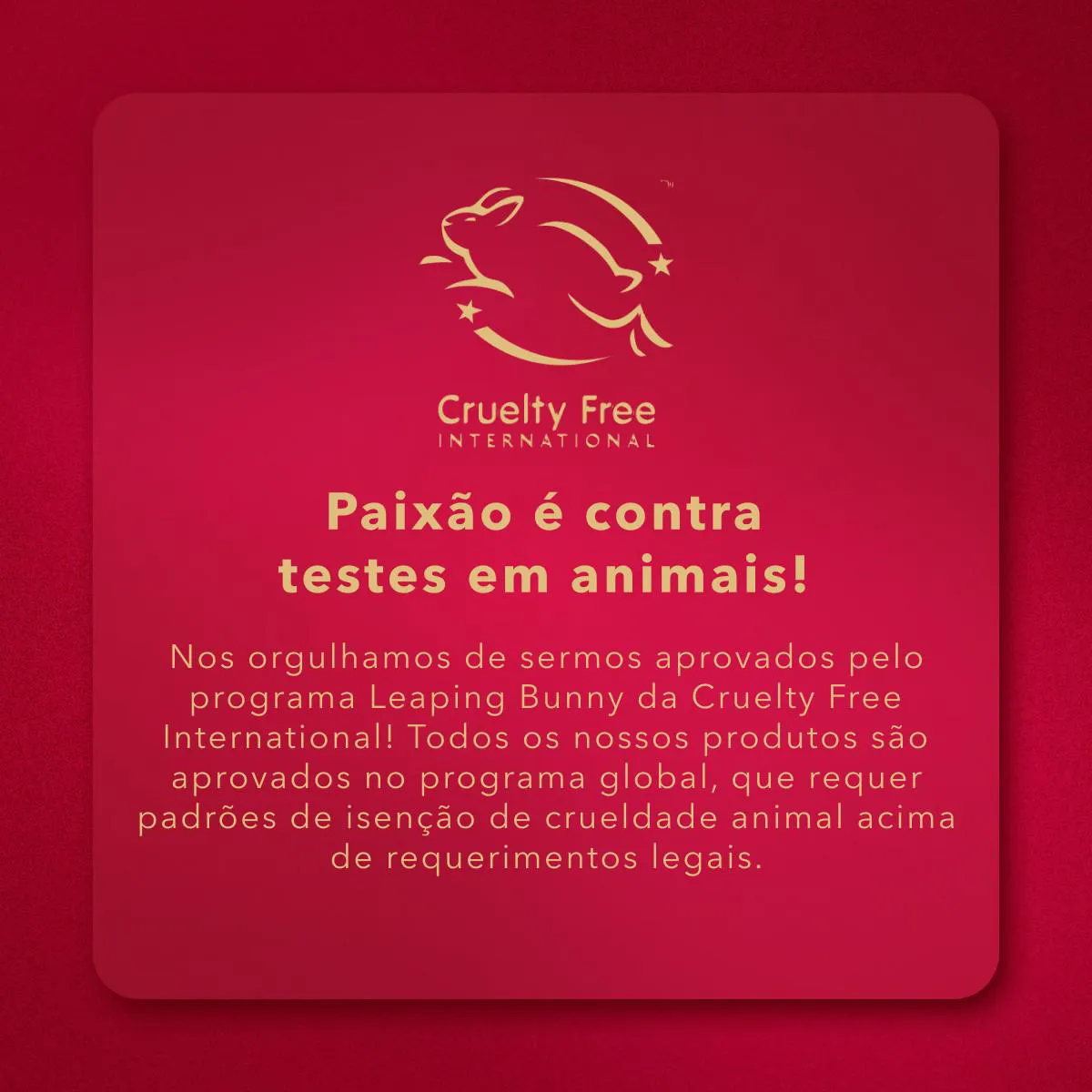 - Produto cruelty-free, aprovado pelo programa Leaping Bunny.