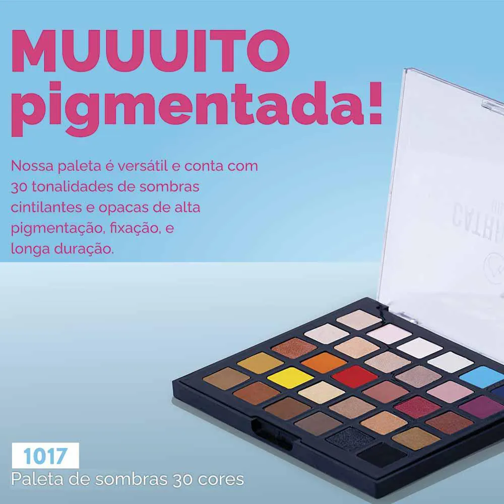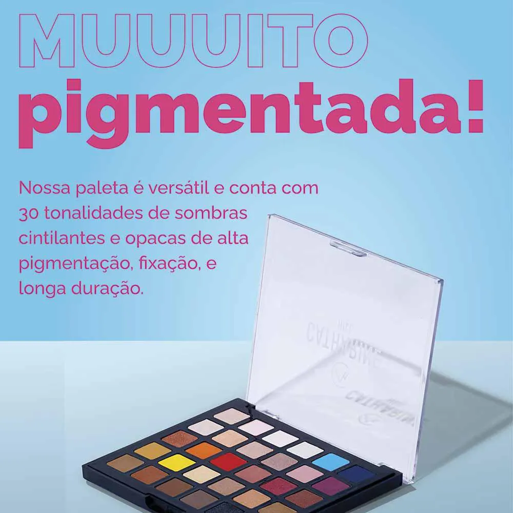 A Paleta queridinha e best-seller da Catharine Hill contém 30 cores diferentes com acabamentos opacos e cintilantes, possibilitando uma versatilidade única para qualquer tipo de maquiagem.