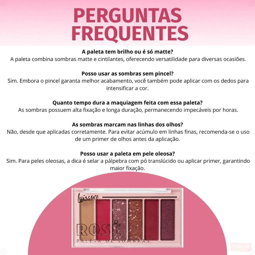 A Paleta de Sombras Luisance Rosé L3236 é perfeita para diversas ocasiões, desde o dia a dia até eventos especiais. Use-a para criar um look natural para o trabalho, um visual sofisticado para um jantar romântico ou uma maquiagem glamourosa para uma festa. Ideal para quem ama maquiagem e busca praticidade e versatilidade em um único produto.