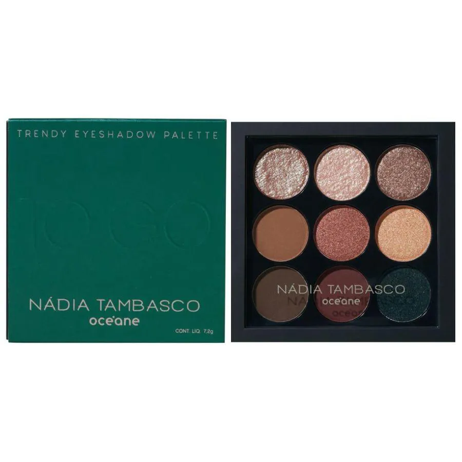 A modernidade é o destaque da Paletas de sombras To Go Trendy idealizada por Nádia Tambasco em parceria com Océane. Com nove tons ultraversáteis, é possível criar um olhar poderoso em todas as ocasiões e acompanhar as tendências mais glamourosas. Outro destaque desta paleta de sombras é sua embalagem elegante e minimalista, com tamanho ideal para levar na bolsa.