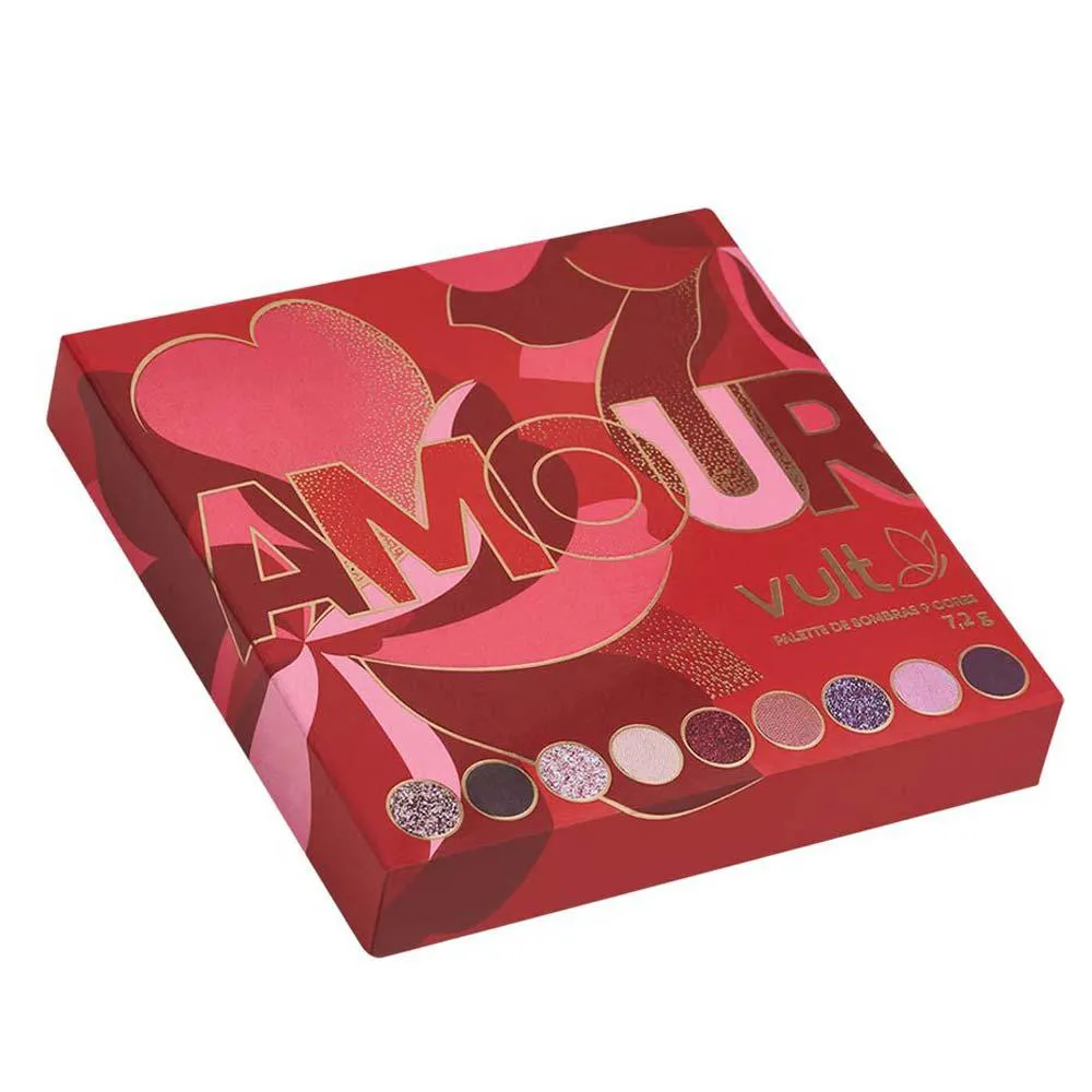 A Paleta de sombras Vult Amour traz sofisticação e cores super pigmentadas em uma edição limitada que representa o amor em todas as suas versões. São 5 cores mattes, 3 cores com brilho e 1 cor acetinada para que você possa expressar todo o seu amor!