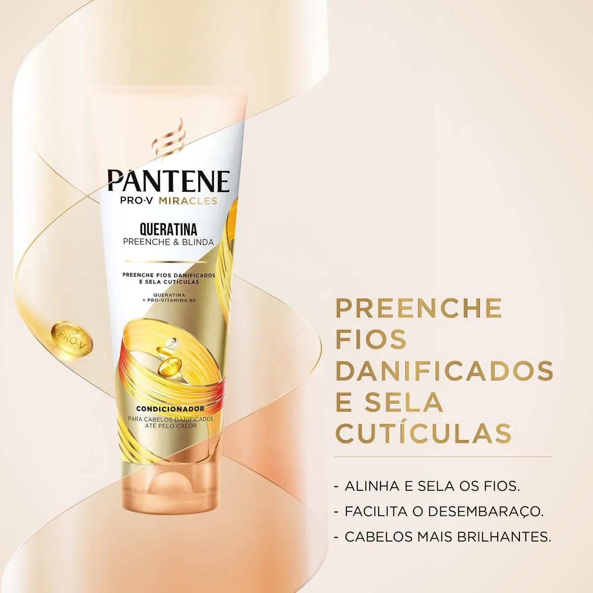 Ideal para cabelos cabelos danificados pelo calor, a nova linha Pantene Queratina Preenche & Blinda contém fórmula Pro-V Miracles com Queratina e Pró-Vitaminas B5 que faz uma reparação contra danos.