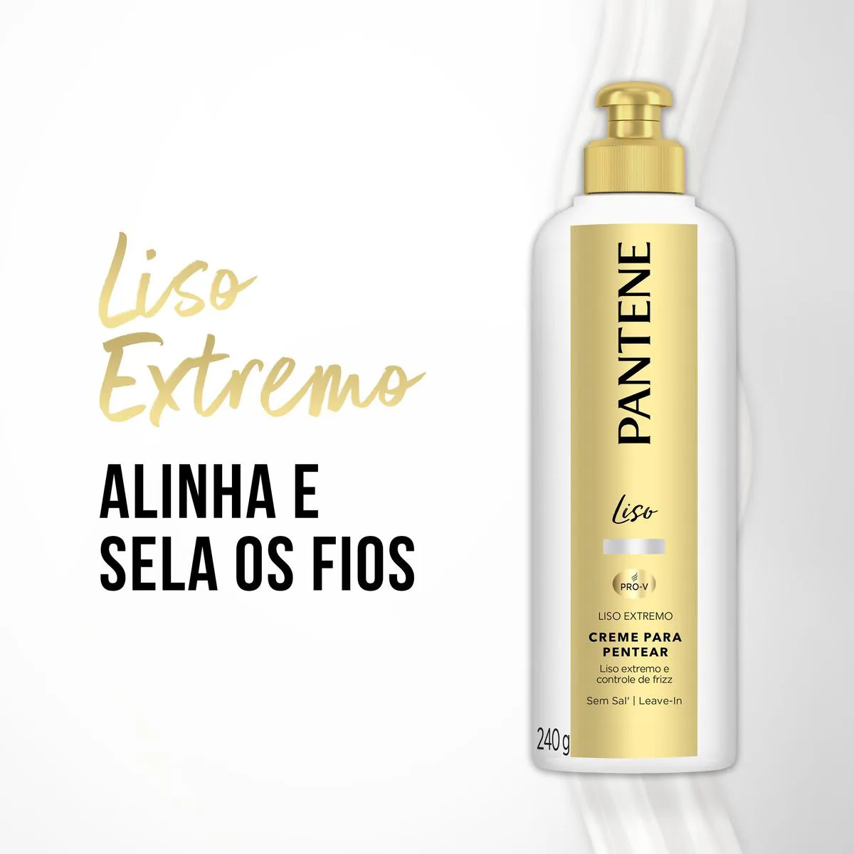 O Creme de Pentear Pantene Liso Extremo é um tratamento sem enxágue para cabelos lisos. Formulado com o sistema exclusivo Pantene Pro-V hidratação, que traz vitaminas e seladores capazes de alinhar os fios para um efeito liso extremo