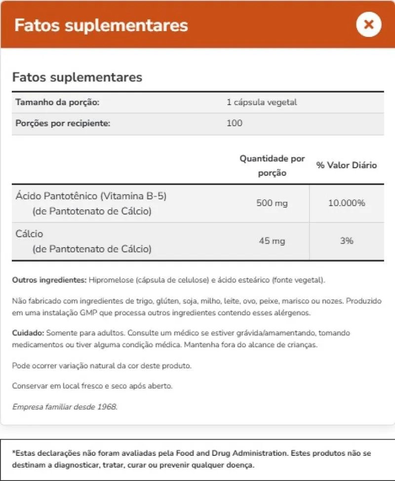 Pantothenic Acid Ácido Pantotênico 500Mg 100 Vcaps Now Foods