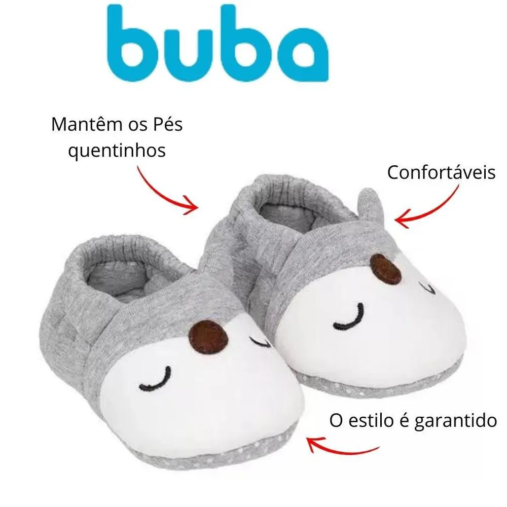 As Pantufinhas da Buba oferecem a combinação perfeita: confeccionadas em tecido 100% de algodão e espuma supermacia.São confortáveis e mantêm os pés quentinhos.O solado é antiderrapante e o estilo é garantido com bichinhos pra lá de fofos! Um par de aconchego!Medidas aprox solado:18 a 24 Meses - 15cm12 a 18 Meses - 13cm9-12meses - 11cm Conteúdo da Embalagem: 1 Par de PantufinhasMaterial/Composição: Tecido: 100% Algodão, Acabamento da Sola e bordado: 100% Poliéster Elástico: 100% Poliéster , Enchimento: 100% PoliésterOutras informações: As cores podem variar entre as imagens mostradas acima e o produto. Imagens meramente ilustrativas.