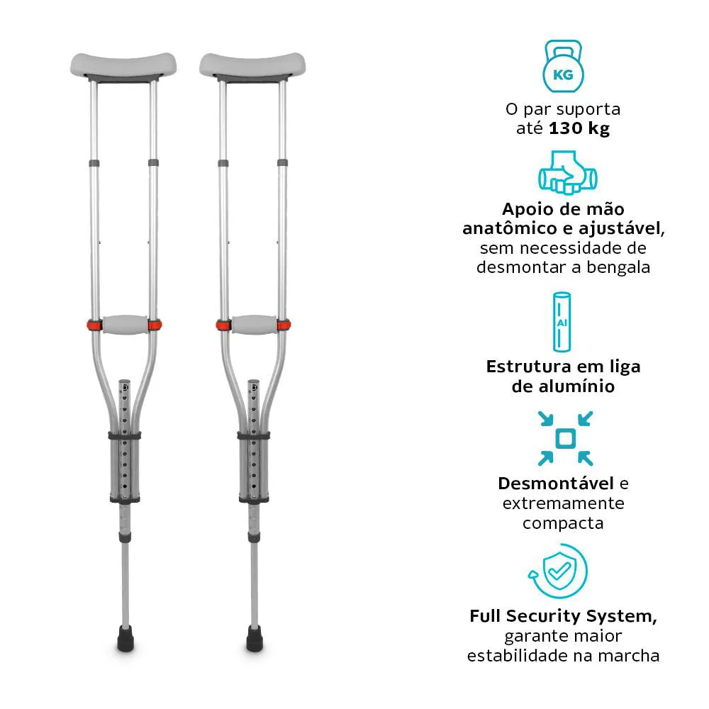 Par de Muleta Axilar de Alumínio P com Regulagem de Altura até 65 Kg D7 Dellamed (2 unidade)