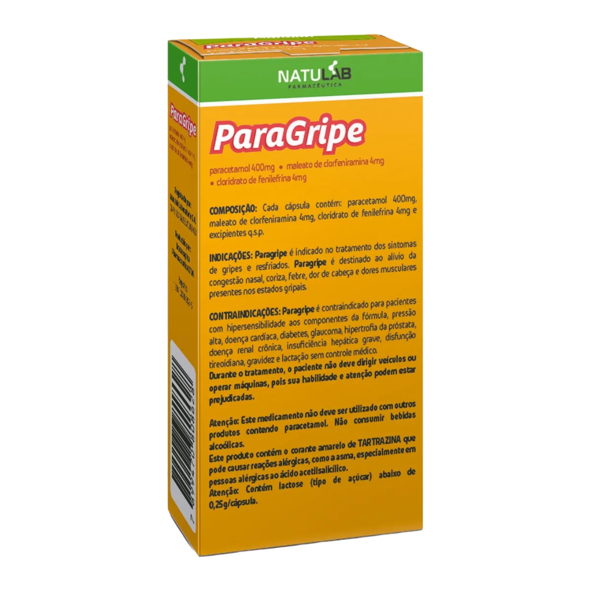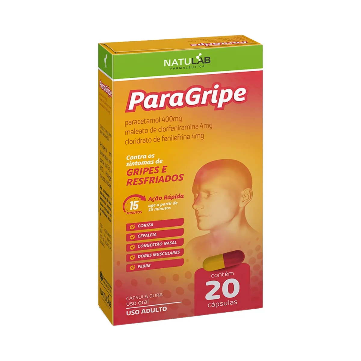Paragripe Paracetamol 400mg + Maleato de Clorfeniramina 4mg + Cloridrato de Fenilefrina 4mg 20 Cápsulas