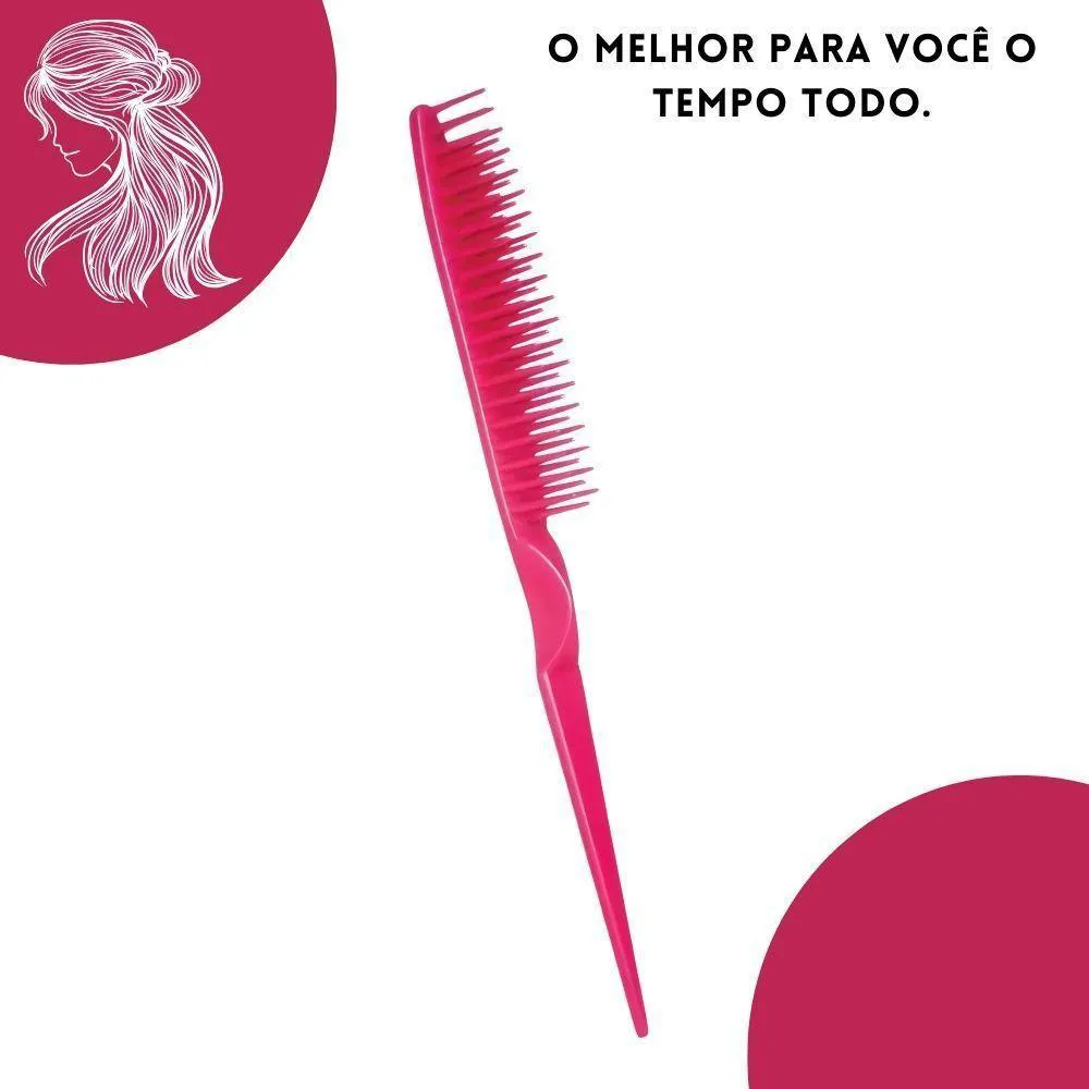 Pente De cabelo Desembaraçador Básico Rosa Com Pontas Arredondadas Ricca