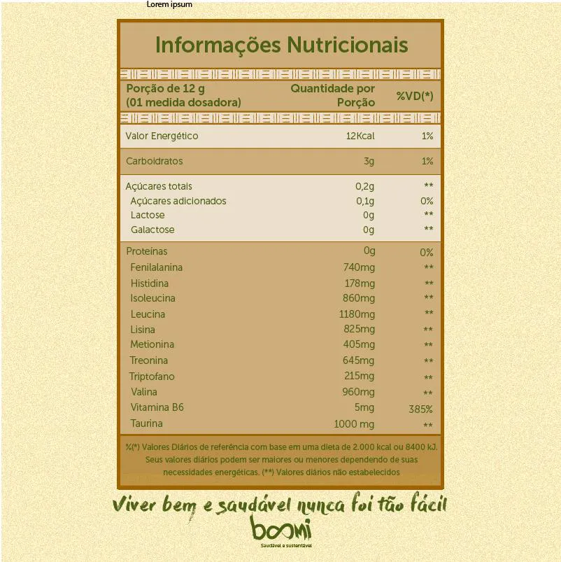 Ingredientes: Blend True Amino (L-leucina, L-valina, L-isoleucina, cloridrato de L-lisina, L-fenilalanina, L-treonina, L-metionina, L-triptofano e L-Histidina), taurina, polpa de maçã em pó, cloridrato de piridoxina (vitamina B6), aromatizantes, acidulante ácido cítrico, antiumectantes dióxido de silício e fosfato tricálcico, corante natural curcumina e edulcorantes glicosídeos de esteviol de stevia rebaudiana bertoni, eritritol e taumatina. NÃO CONTÉM GLÚTEN.