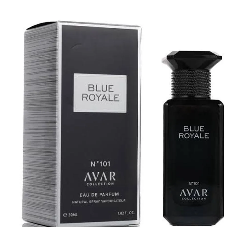 Perfume Avar Collection Nº 101 Blue Royale Eau de Parfum Masculino 30 ml é uma fragrância refinada e contemporânea, ideal para homens que valorizam estilo e sofisticação em todas as ocasiões, seja no dia a dia ou à noite.