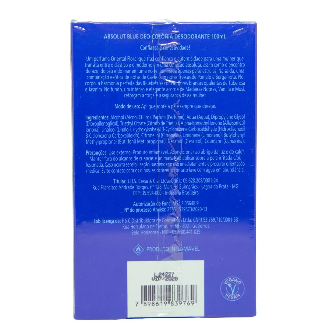 Perfume Deo Colônia Absolut Blue K Constâncio 100Ml