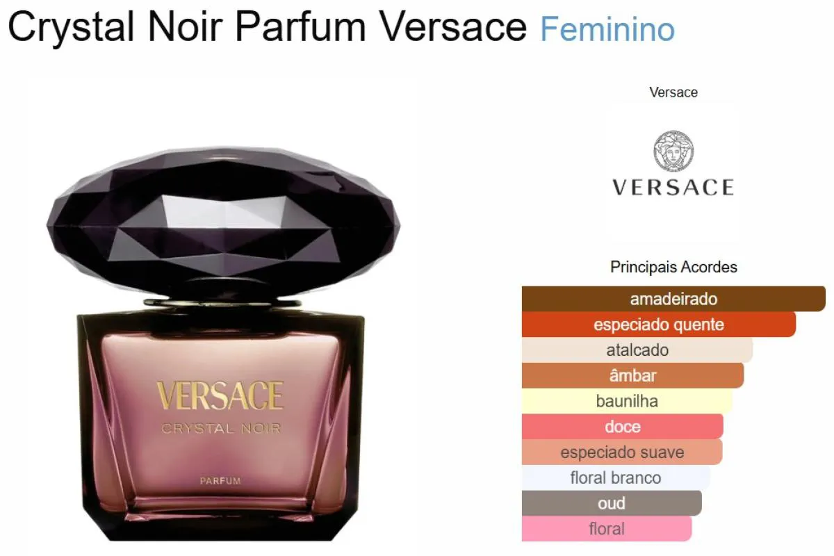 Crystal Noir Parfum de Versace é um perfume Oriental Floral Feminino.Esta é uma nova fragrância. Crystal Noir Parfum foi lançada em 2024. As notas de topo são: Especiarias, Pimenta Rosa e Groselha Preta. As notas de coração são: Caramelo, Tuberosa e Lírio-do-Vale. As notas de fundo são: Âmbar, Baunilha, Sândalo, Akigalawood e Orquídea.