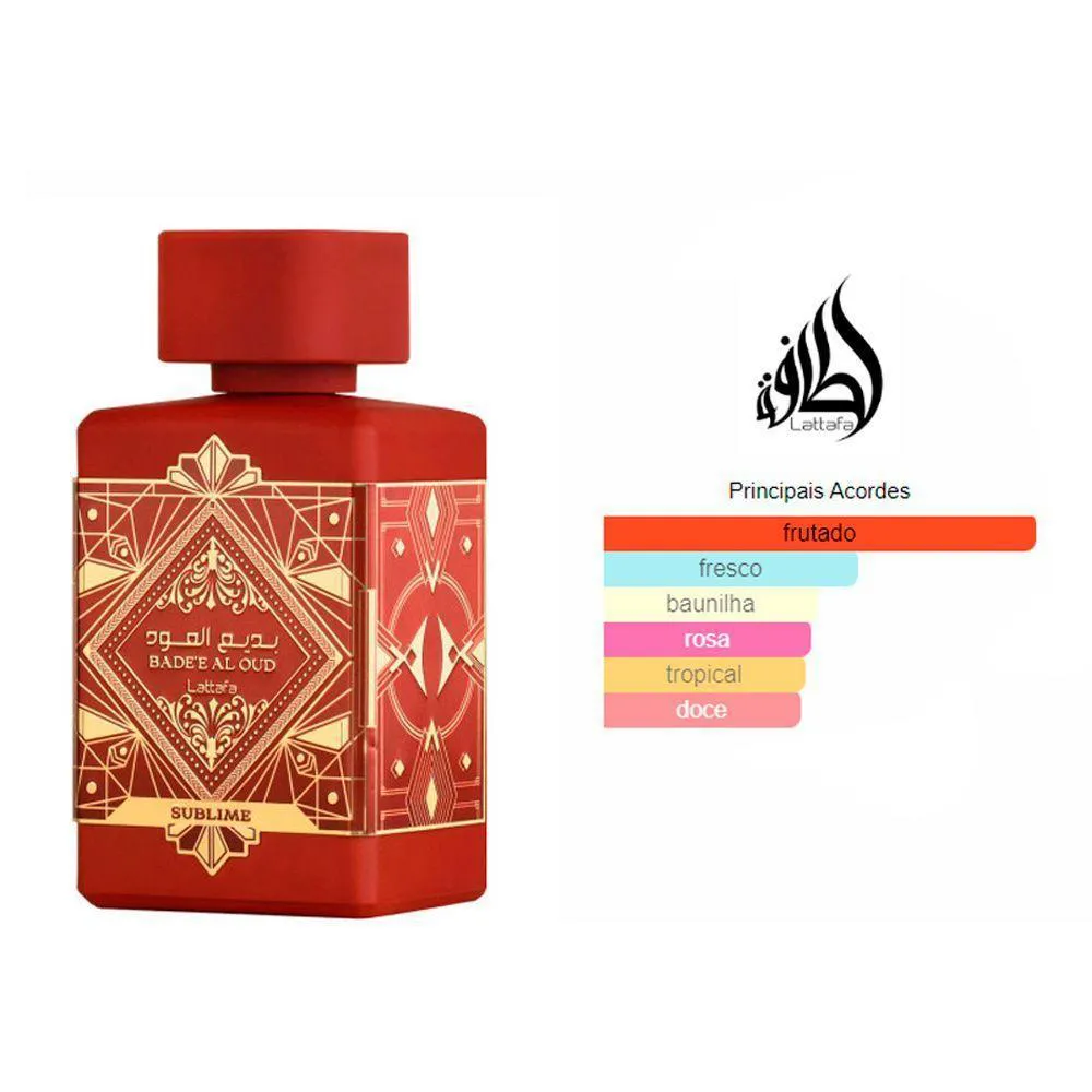 O Perfume Lattafa Bade'e Al Oud Sublime Eau De Parfum Unissex é uma fragrância Amadeirada Aromática, ideal para ser compartilhada. Esta é uma adição recente ao seu catálogo de perfumes. Lançada em 2023, essa essência exala elegância e sofisticação, perfeita para aqueles que buscam uma marca olfativa marcante e envolvente para ocasiões especiais. Sua mistura singular de notas cria uma experiência olfativa memorável, deixando uma aura sedutora e refinada onde quer que seja aplicada.Sobre a marca:A Lattafa Perfumes Indústria L.L.C é uma das pioneiras e bem estabelecidas fabricantes de perfumes nos Emirados Árabes Unidos, estabelecida desde 1995. Atualmente, a empresa tem uma capacidade de produção anual superior a 35 milhões de unidades de perfumes e 18 milhões de unidades de desodorantes.Notas Olfativas:Notas de Topo: Maçã, Lichia e RosaNotas de Coração: Ameixa e JasmimNotas de base: Baunilha, Musgo e Patchouli*Imagens Meramente Ilustrativas.*As cores do produto podem variar de acordo com o monitor, a iluminação do ambiente e a sua percepção visual.*Verifique nossas políticas internas para que não haja nenhuma dúvida ao finalizar a compra.