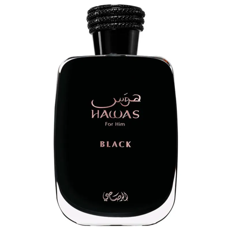 Hawas Black de Rasasi é um perfume Aromático Frutado Masculino. Esta é uma nova fragrância. Hawas Black foi lançado em 2024. As notas de topo são: Bergamota, Abacaxi e Toranja. As notas de coração são: Patchouli, Cedro e Jasmim. As notas de fundo são: Musgo de Carvalho, Notas Amadeiradas e Âmbar.