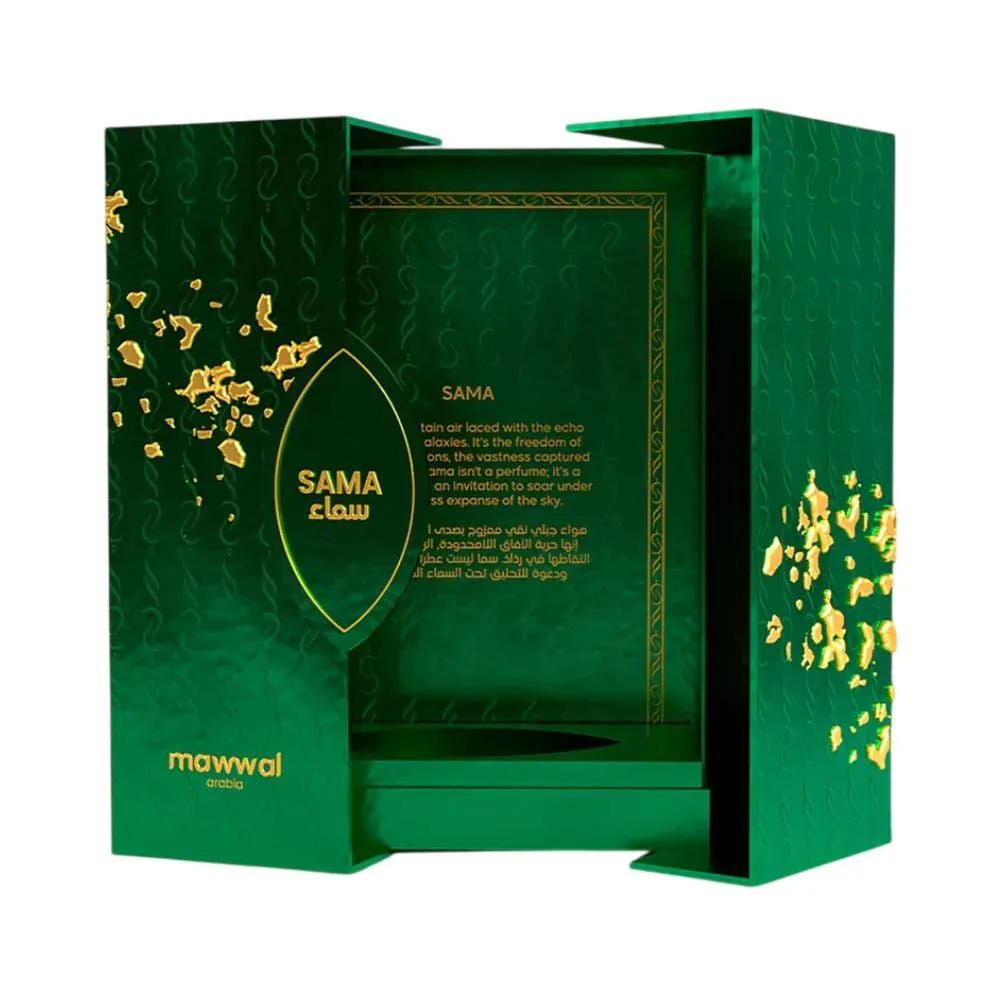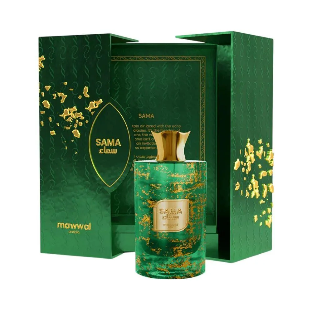 O Perfume Sama da Mawwal Arabia é uma fragrância unissex criada para transmitir uma sensação de frescor orgânico e elegância moderna. Composto por notas cítricas, frutadas, especiarias e elementos amadeirados, o perfume combina diferentes camadas olfativas que vão desde notas de topo frescas até uma base sofisticada e envolvente. Sua composição inclui ingredientes como toranja, bergamota, pêra, maçã, muguet, pêssego, canela, cedro, sândalo, âmbar e baunilha. Desenvolvido para ser uma experiência olfativa leve e equilibrada, o perfume serve para proporcionar uma presença sutil e marcante ao longo do dia, especialmente em momentos de transição como o fim da tarde, oferecendo ao usuário uma fragrância versátil e elegante que expressa personalidade com discrição refinada.