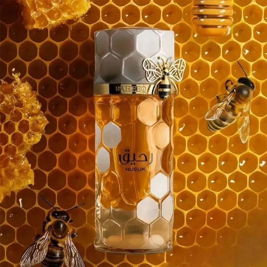 Perfume Raheeq Extrait de Parfum 100ml A fragrância abre com uma explosão rica de mel, misturada com os sabores suculentos de tamarindo, laranja, limão e damasco. Essa camada superior exala um calor dourado. É instantaneamente reconfortante e revigorante, ideal para dias frios no Reino Unido ou ambientes internos aconchegantes. À medida que o coração da fragrância se desenvolve, notas doces e cremosas de caramelo e coco emergem, suavizadas pela magnólia floral. Esta fase intermediária é indulgente sem ser avassaladora. Doce, feminina, mas ainda assim usável por homens que preferem notas suaves e envolventes. A fragrância, com notas de baunilha absoluta, almíscar e sândalo, deixa uma impressão aveludada, sedutora e duradoura. Permanece na pele como uma doce e suave lembrança.