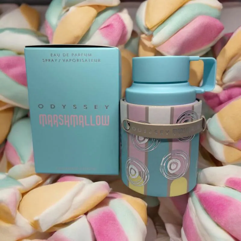 Odyssey Marshmallow de Armaf é um perfume Floral Frutado Gourmet Compartilhável. Esta é uma nova fragrância. Odyssey Marshmallow foi lançada em 2025. As notas de topo são: Coco, Peônia, Maçã, Lírio-do-Vale e Limão. As notas de coração são: Marshmellow, Morango, Framboesa, Damasco, Pêssego e Flor de Laranjeira. As notas de fundo são: Queijo mascarpone, Pralinê, Baunilha, Fava Tonka, Âmbar e Almíscar.