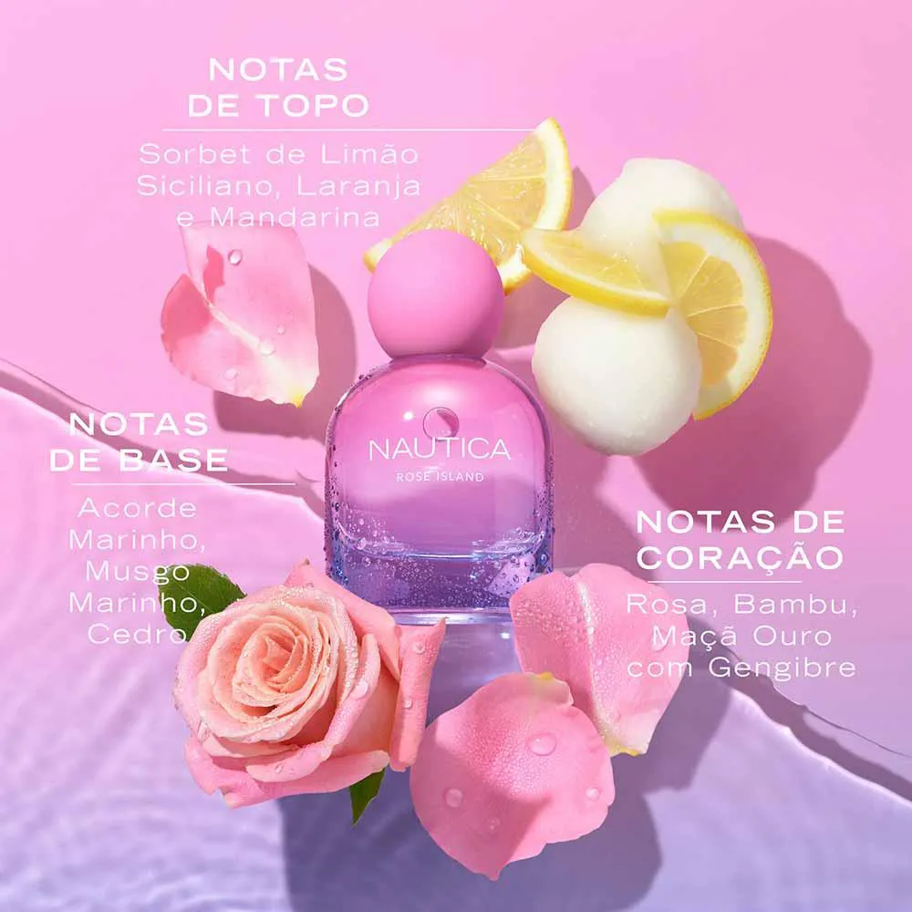 O perfume Nautica For Her Rose Island é um Eau de Parfum feminino que possui uma fragrância floral ambarada, inspirada na revigorante energia do mar.