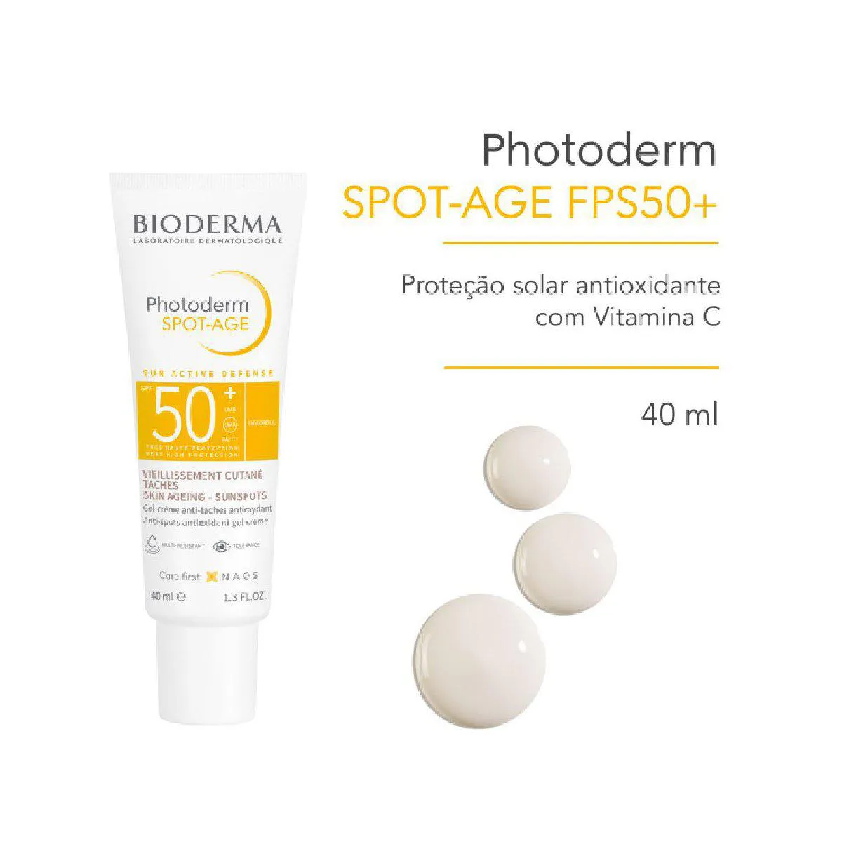 Bioderma Photoderm Spot Age é um protetor solar facial com tripla ação: proteção solar, ação antioxidante e vitamina c em um só produto.