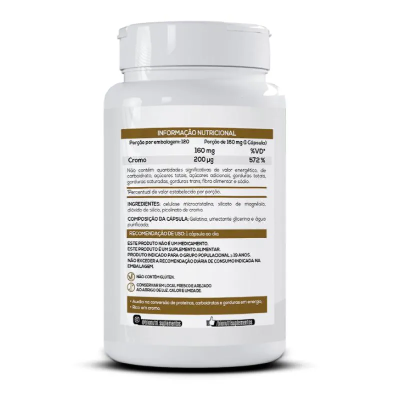 Picolinato de Cromo 160Mg 120 Capsulas - Bionutri