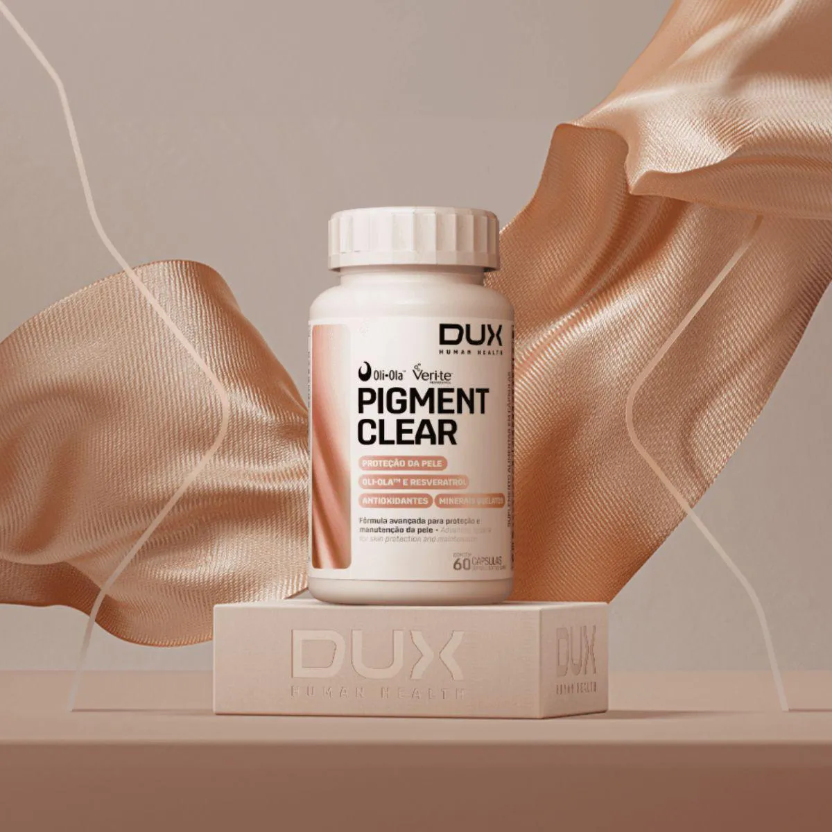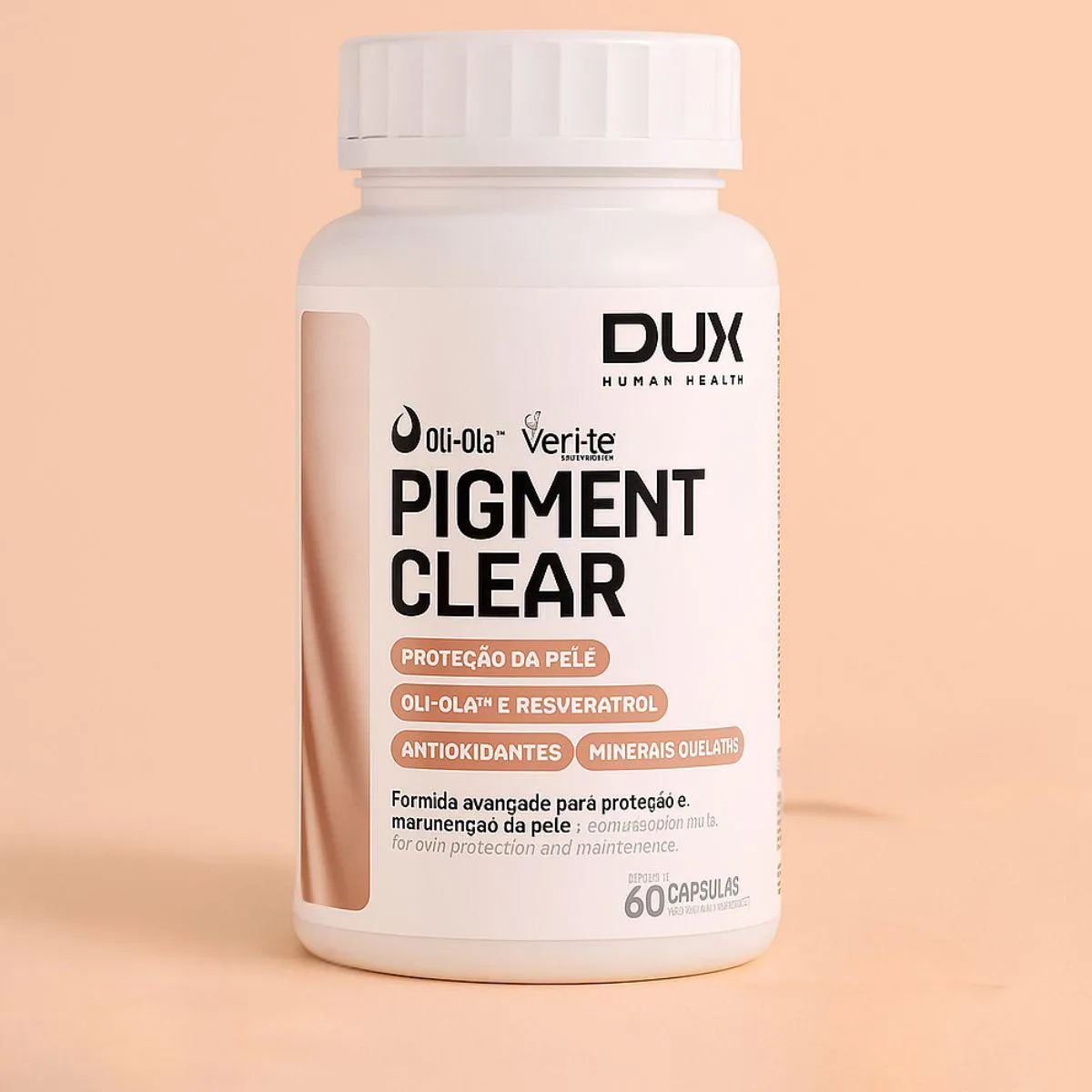 Pigment Clear da Dux Nutrition é um suplemento em cápsulas formulado para quem valoriza a saúde da pele. Contém resveratrol de fontes naturais, vitaminas antioxidantes como C e E e minerais quelados como zinco e selênio, que ajudam na proteção contra radicais livres. As cápsulas vegetais são fáceis de engolir e fornecem uma dose equilibrada de nutrientes em cada porção.
