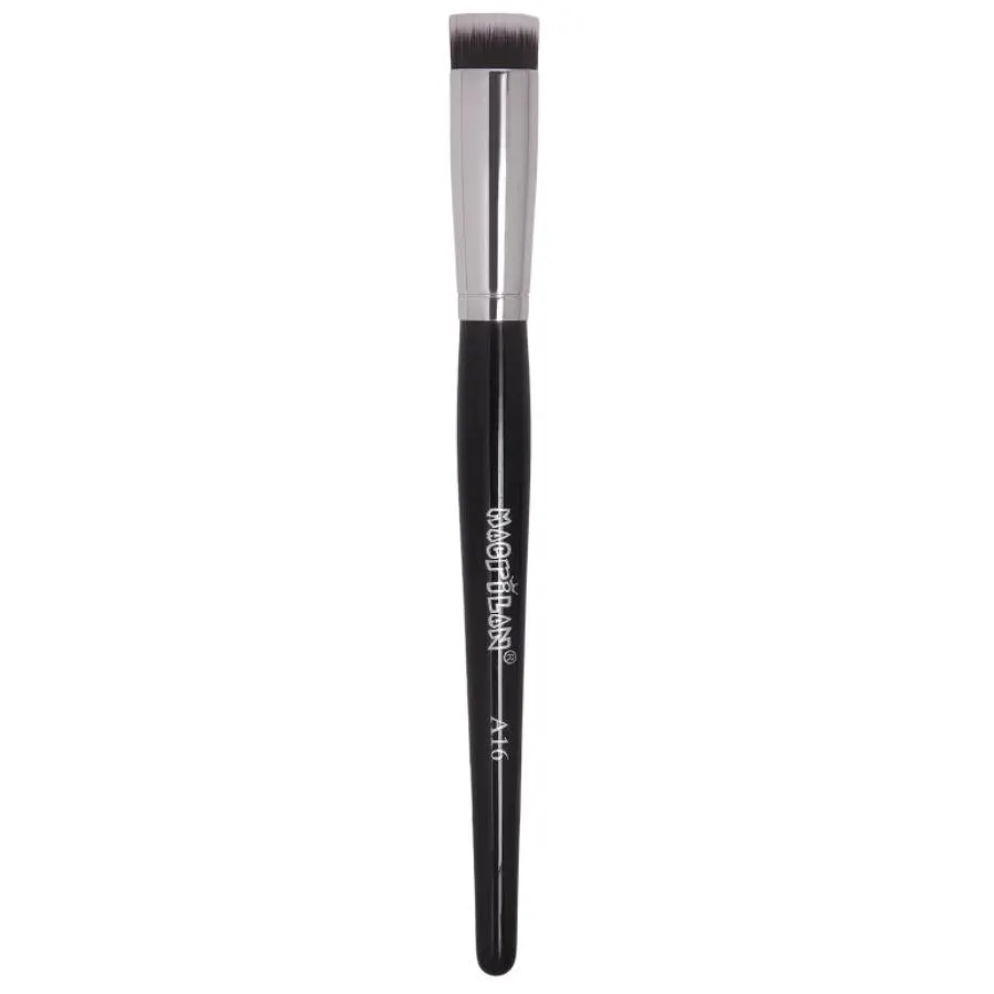 Pincel para Contorno da Macrilan A16, especialmente desenvolvido para aplicar e fazer marcações de contornos com produtos líquidos e cremosos. Macio e de cerdas sintéticas seu tamanho é ideal para qualquer formato de rosto.