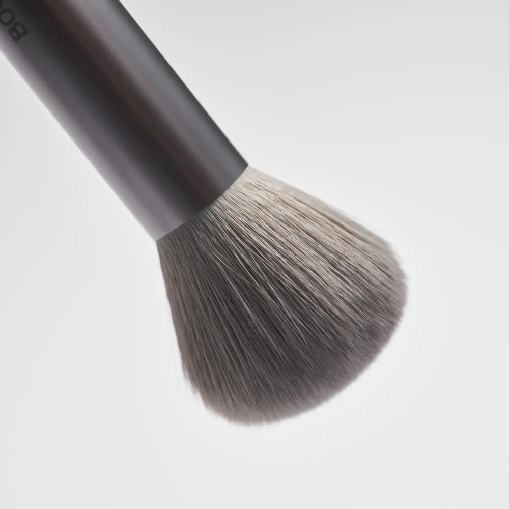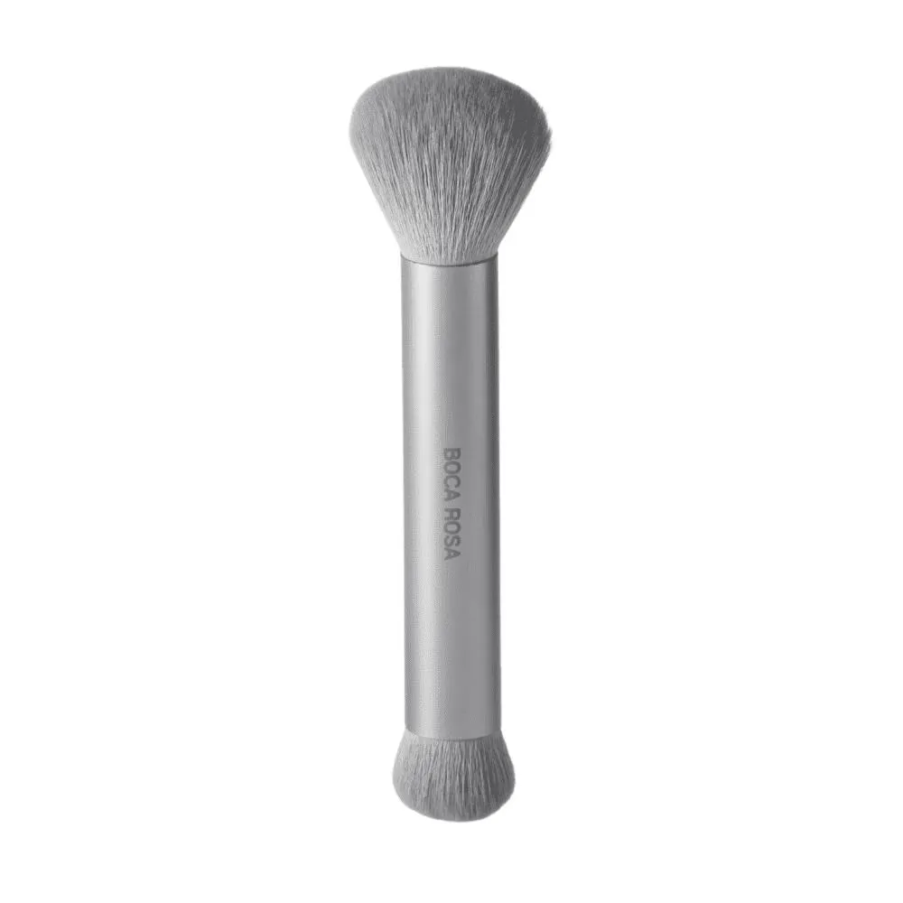 - Lado com cerdas longas: perfeito para aplicar e esfumar base, blush ou pó em áreas maiores como bochechas e testa – com acabamento leve e natural.