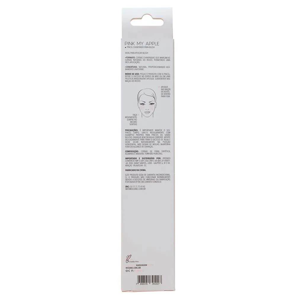 Pink My Apple da Océane é um pincel chanfrado feito para facilitar a aplicação de blush, possui cerdas com formato angular, que exalta as curvas faciais naturais. É perfeito para definir, sombrear e realçar.