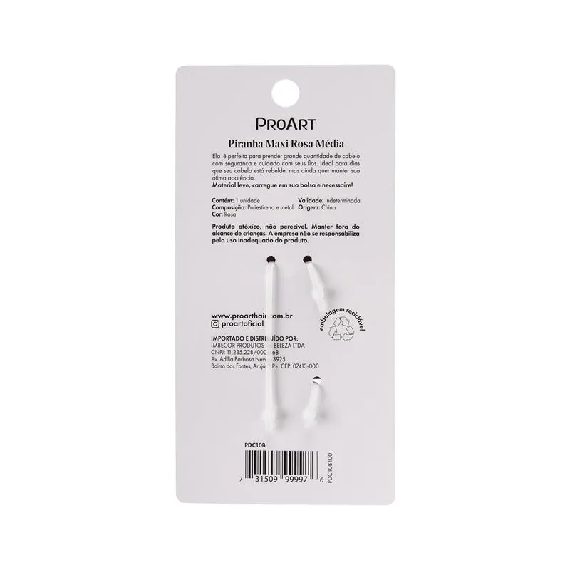 Piranha de cabelo Maxi Rosa Média - Proart - Fixação Segura e Confortável para Seus Cabelos