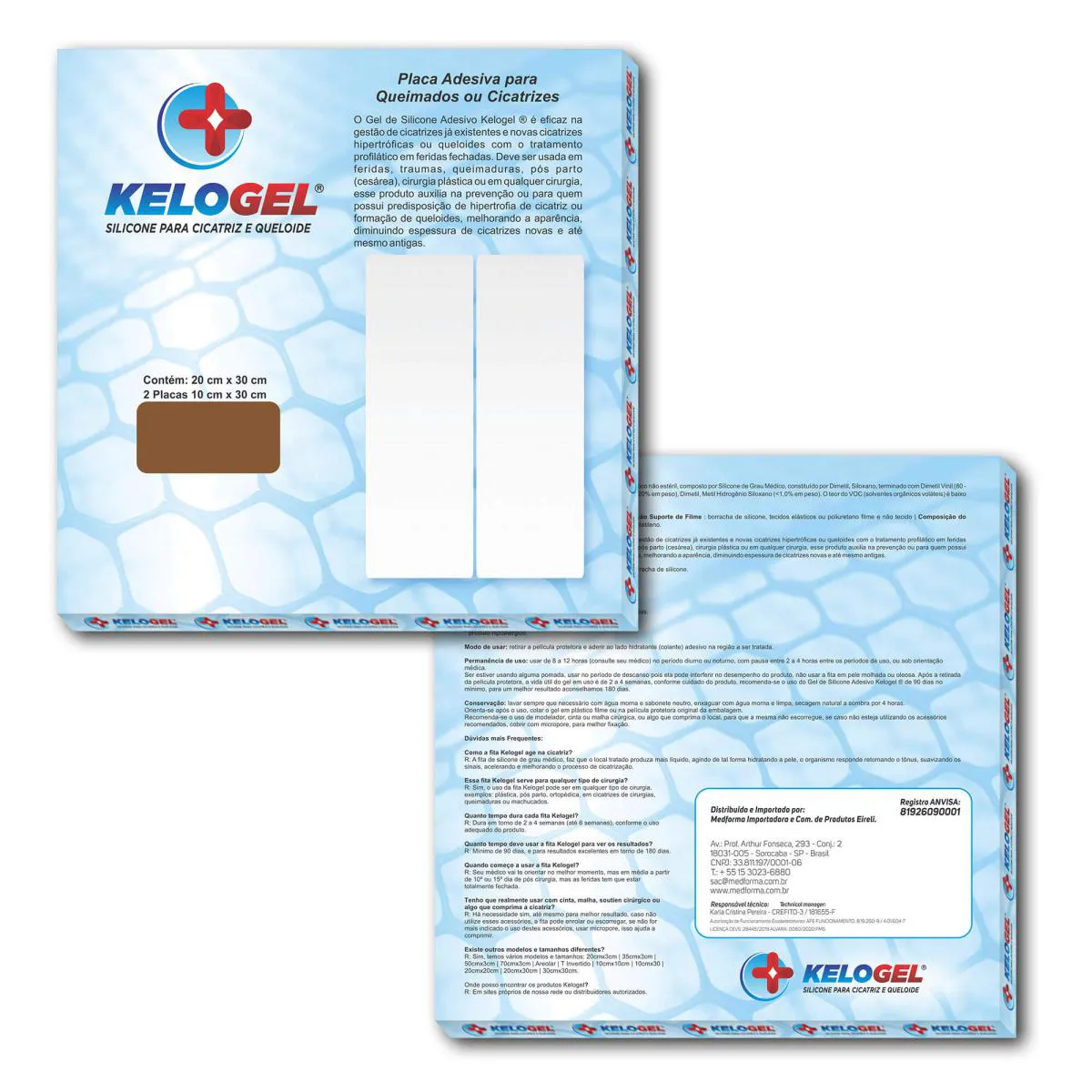 Indicação: O Gel de Silicone Adesivo Kelogel® é eficaz no tratamento de cicatrizes, cicatrizes hipertróficas e queloides em feridas fechadas. É indicado para uso em feridas, traumas, queimaduras, pós-parto (cesárea), cirurgias plásticas ou outras, auxiliando na prevenção de hipertrofia de cicatriz ou formação de queloides, melhorando a aparência e diminuindo a espessura de cicatrizes novas e antigas. Benefícios: Cicatrizes mais claras, menos avermelhadas e menos espessas. Contraindicação: Evite o uso do produto se for alérgico a borracha de silicone. Não use em feridas não cicatrizadas. Modo de usar: Higienize as mãos, certificando-se de que estejam livres de produtos oleosos. Limpe e sanitize a pele onde será aplicado, não use pomada, creme ou algo oleoso. Seque, retire a película protetora e aplique o lado colante na região. Use de 8 a 12 horas diurnas ou noturnas, com pausas de 2 a 4 horas entre os períodos de uso ou conforme orientação médica. Se estiver usando pomada, aplique durante o período de descanso, pois pode interferir no desempenho do produto. Após a retirada da película protetora, a vida útil do gel é de 2 a 4 semanas, dependendo dos cuidados. Recomenda-se o uso do Gel por no mínimo 90 dias, aconselhando-se 180 dias para melhores resultados. Conservação: Lave sempre que necessário com água morna e sabonete neutro, enxague com água morna, deixe secar naturalmente à sombra por 4 horas. Use modelador, cinta ou malha cirúrgica para comprimir o local e evitar que escorregue, cobrindo com micropore para melhor fixação. REGISTRO ANVISA/ MS nº 81926090001