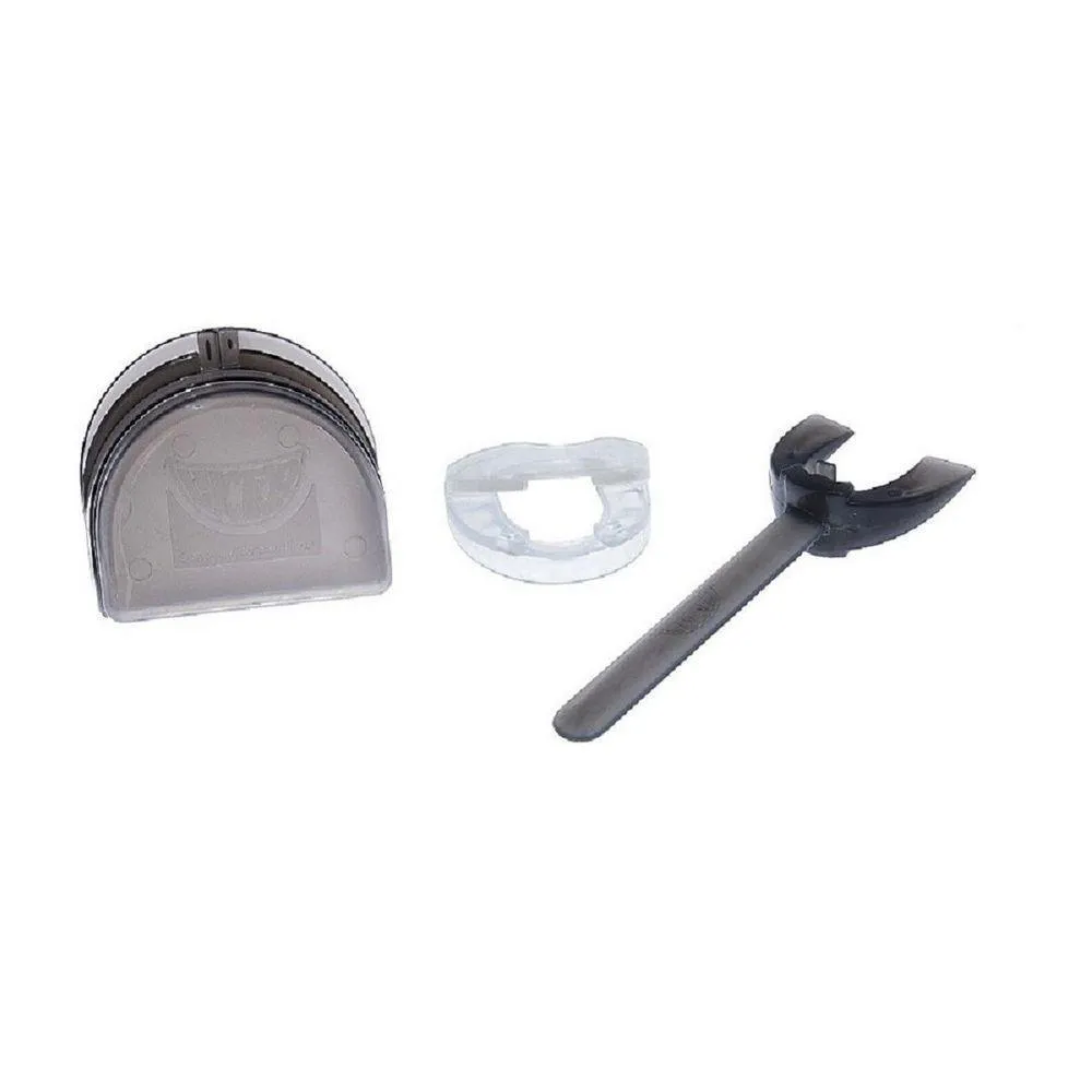 O único aparelho articulado e com a utilidade de 5em1 capaz de suprir todas suas necessidades e sem artefatos embutidos para união das partes superior e inferior, para não ter risco de ingerir. Placa moldável articulada para bruxismo, anti ronco, esportes leves, clarear dentes, moldável em usuário de aparelho. Confortável, oferece uma proteção total da arcada superior e inferior, não deixa morder a língua, laterais da bochecha e lábios, evita desgastes e quebra de dentes, lesões, queixo, mandíbula, dores de ouvido e zumbido (relacionados ao bruxismo), maior proteção.