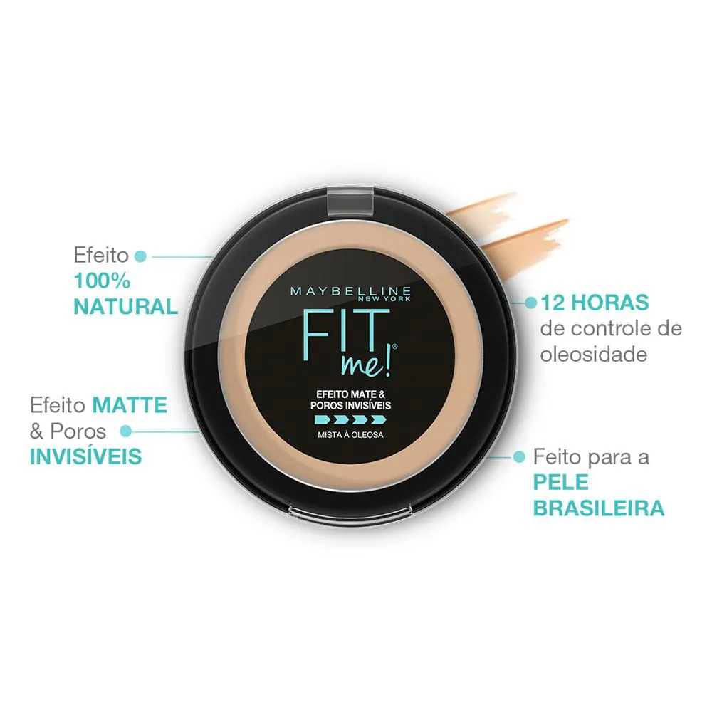 Pó Compacto Translúcido, Controle de Brilho e Efeito Matte por até 12h, Maybelline New York Fit Me
