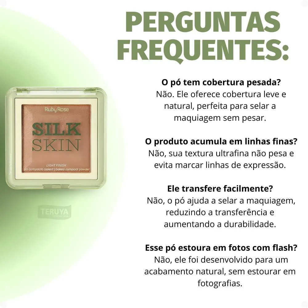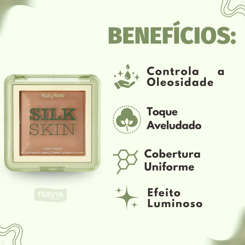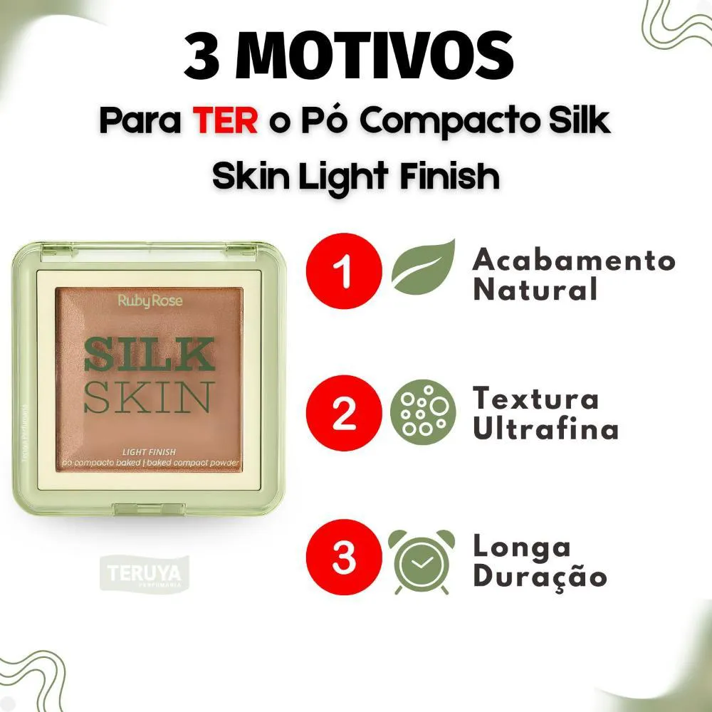 Pó Compacto Ruby Rose Silk Skin Light Finish PC30 HB-M403-3 é o aliado perfeito para uma