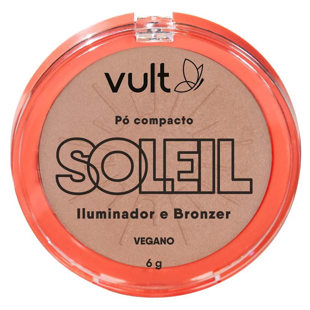 O Pó Compacto Soleil é 2 em 1: iluminador e bronzer. Possui textura leve, aveludada e ultrafina, garantindo efeito iluminado e bronzeado num mesmo produto. Além disso, é vegano, cruelty free e claro, não deixa a pele com excesso de brilho ou aparência oleosa Efeito iluminado e bronzeado/ acabamento radiante Textura leve, aveludada e ultra fina 2 em 1: bronzer e contorno.