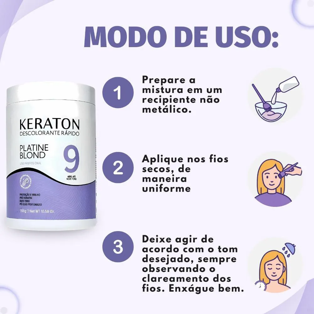 Pó Descolorante Keraton Kert Platine Blond Abre Até 9 Tons 300g
