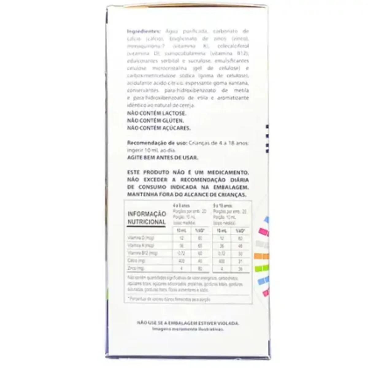 IngredientesCálcio (Carbonato de cálcio), Magnésio (Glicerofosfato de magnésio), vitamina c (Ácido ascórbico), Zinco (Bisglicinato de zinco), Vitamina K (Menaquinona), Vitamina D3 (colecalciferol), Vitamina B12 (Cianocobalamina).