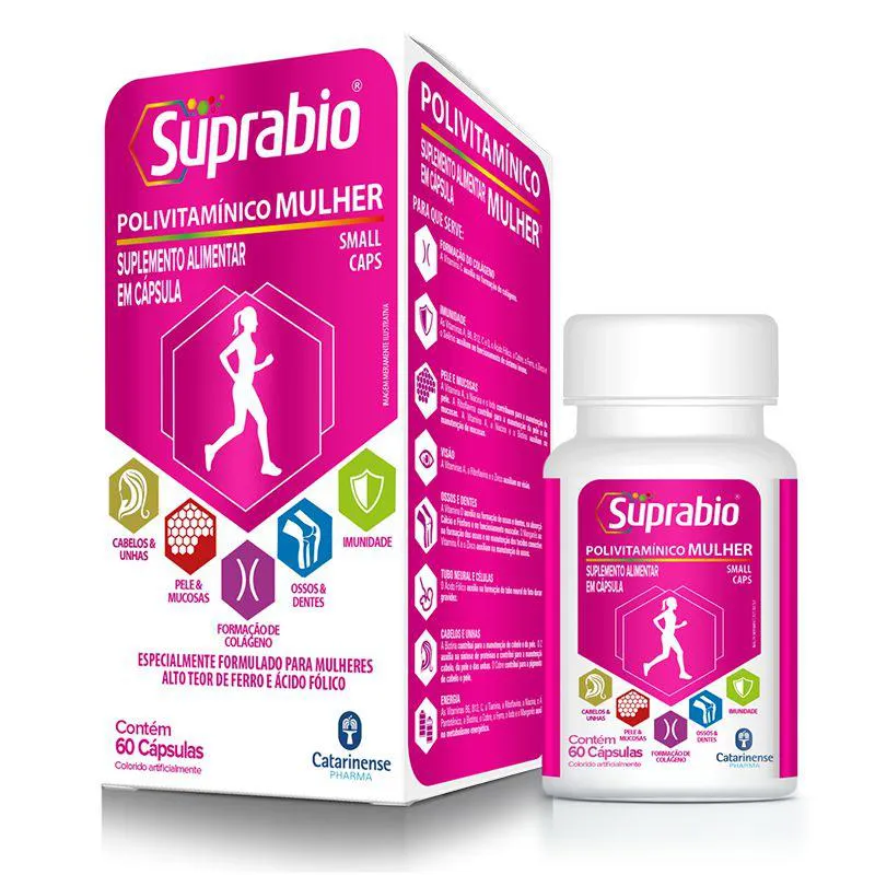 Polivitamínico Mulher Catarinense 60 cápsulas Foi desenvolvido com base nas necessidades nutricionais específicas das Mulheres. Sua composição de nutrientes foi cuidadosamente escolhida de modo a complementar a ingestão de vitaminas e minerais, essenciais para o bem-estar da mulher.