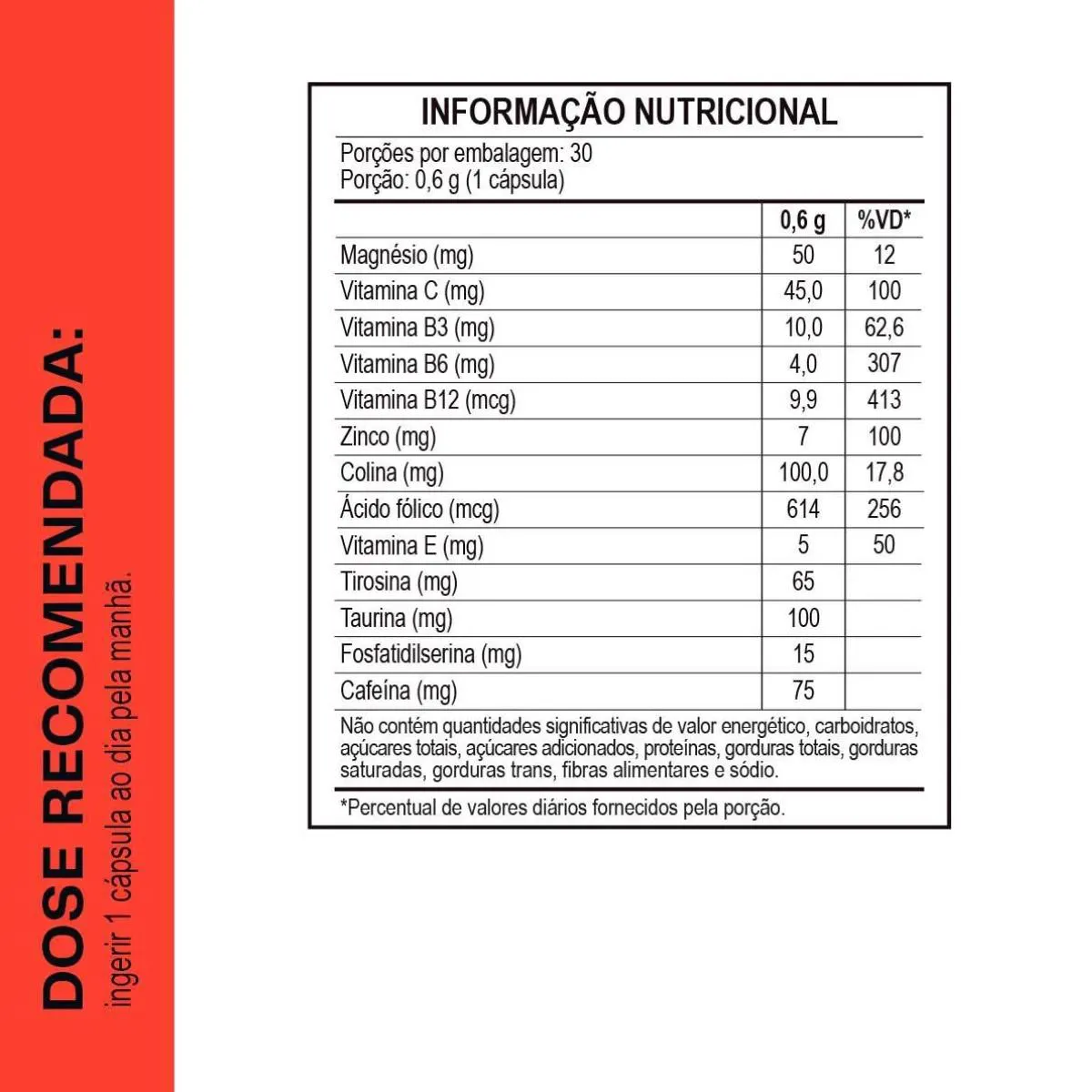 - Contém Fosfatidilserina, Colina e Cafeína.