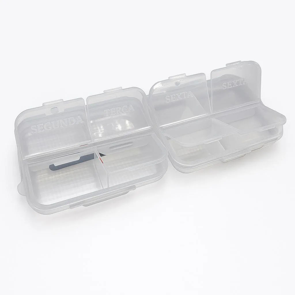 - Uso: Ideal para organizar cápsulas, comprimidos ou tabletes para uso diário, facilitando o transporte em viagens, academia ou trabalho