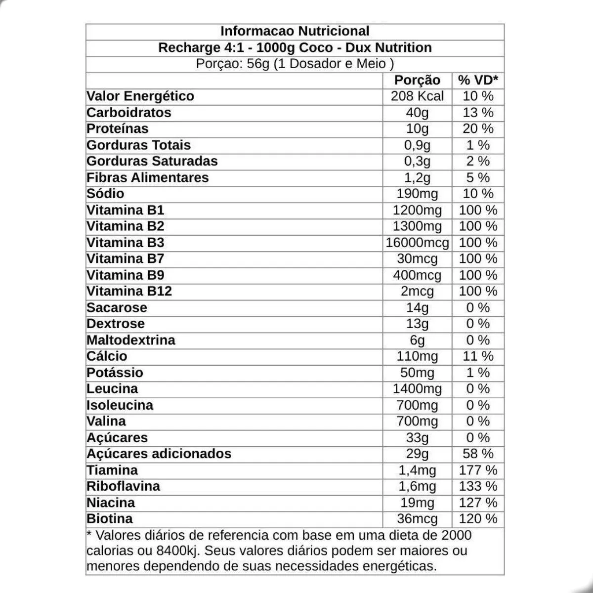 - Consulte um nutricionista para adaptar a quantidade do produto às suas necessidades energéticas.