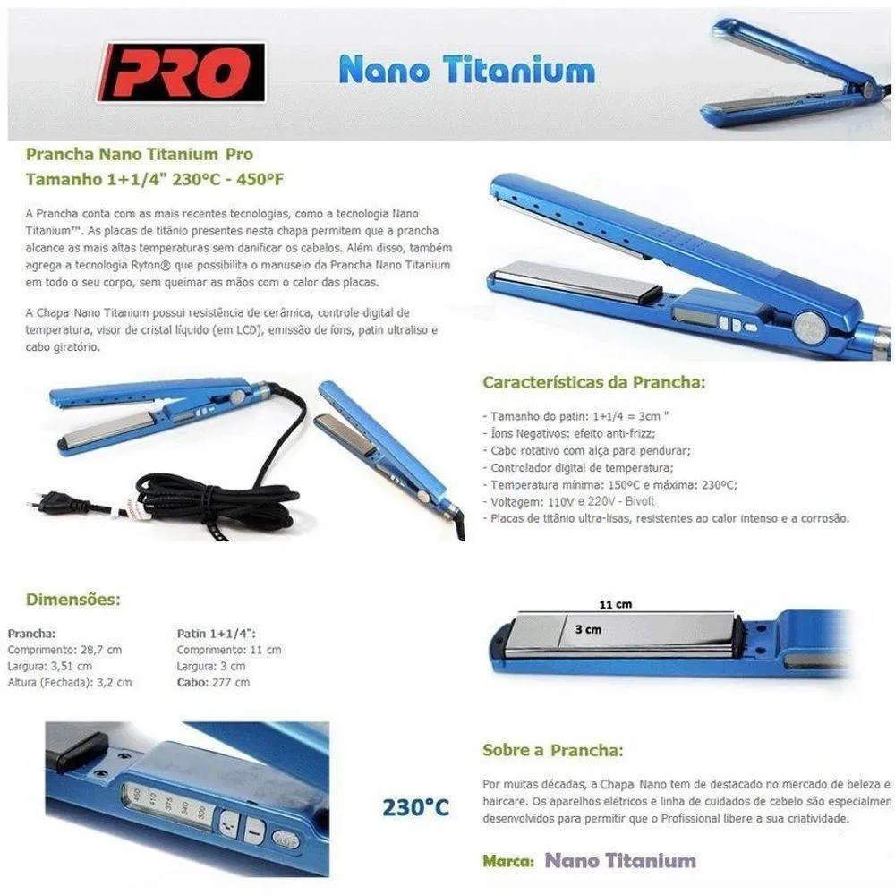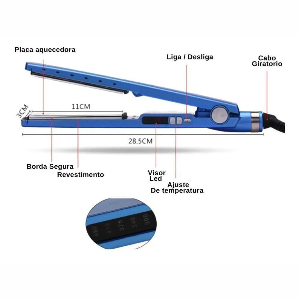 Prancha desenvolvida para o que precisa de um alto poder de concentração de calor para trabalhar durante os processos químicos (em menos passadas o cabelo estará 100% selado). Vem com controle de temperatura para atender todos os tipos de cabelos.