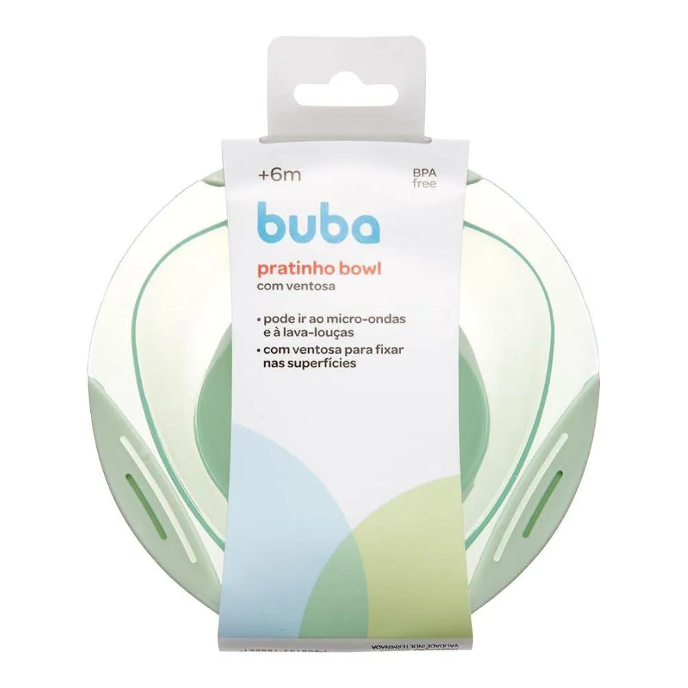 Pratinho Bowl Verde com Ventosa Buba ? Antiderrapante, Livre de BPA, Ideal para Introducao Alimentar O Pratinho Bowl Verde com Ventosa da Buba e a escolha ideal para tornar as refeicoes do seu bebe mais seguras e praticas. Com design funcional e materiais de qualidade, e um item indispensavel na fase de introducao alimentar. Facilite a introducao alimentar do seu bebe com o Pratinho Bowl Verde com Ventosa da Buba. Desenvolvido para proporcionar praticidade e seguranca durante as refeicoes, este pratinho e ideal para o dia a dia. Equipado com uma ventosa na base, o pratinho fixa-se firmemente a superficie, evitando deslizamentos e quedas. Seu formato redondo e tamanho adequado permitem servir papinhas, frutas e outros alimentos de forma organizada. Fabricado em material duravel e livre de BPA, o pratinho e seguro para o uso diario e facil de limpar. Compativel com micro-ondas e lava-loucas, oferece praticidade para os pais e cuidadores. Adquira agora o Pratinho Bowl Verde com Ventosa da Buba e proporcione uma alimentacao mais segura e confortavel para o seu bebe. Caracteristicas Tecnicas - Modelo: 18866 - Marca: Buba - Cor: Verde - Material: Polipropileno e Elastomero Termoplastico (TPE) - Livre de BPA: Sim - Formato: Redondo - Quantidade de Compartimentos: 1 - Dimensoes do Produto: 15 cm (diametro) x 6 cm (altura) - Idade Recomendada: A partir de 6 meses - Compativel com Micro-ondas: Sim - Compativel com Lava-loucas: Sim - Superficie Antiderrapante: Sim (ventosa na base) - Certificacao: Produto isento de certificacao INMETRO