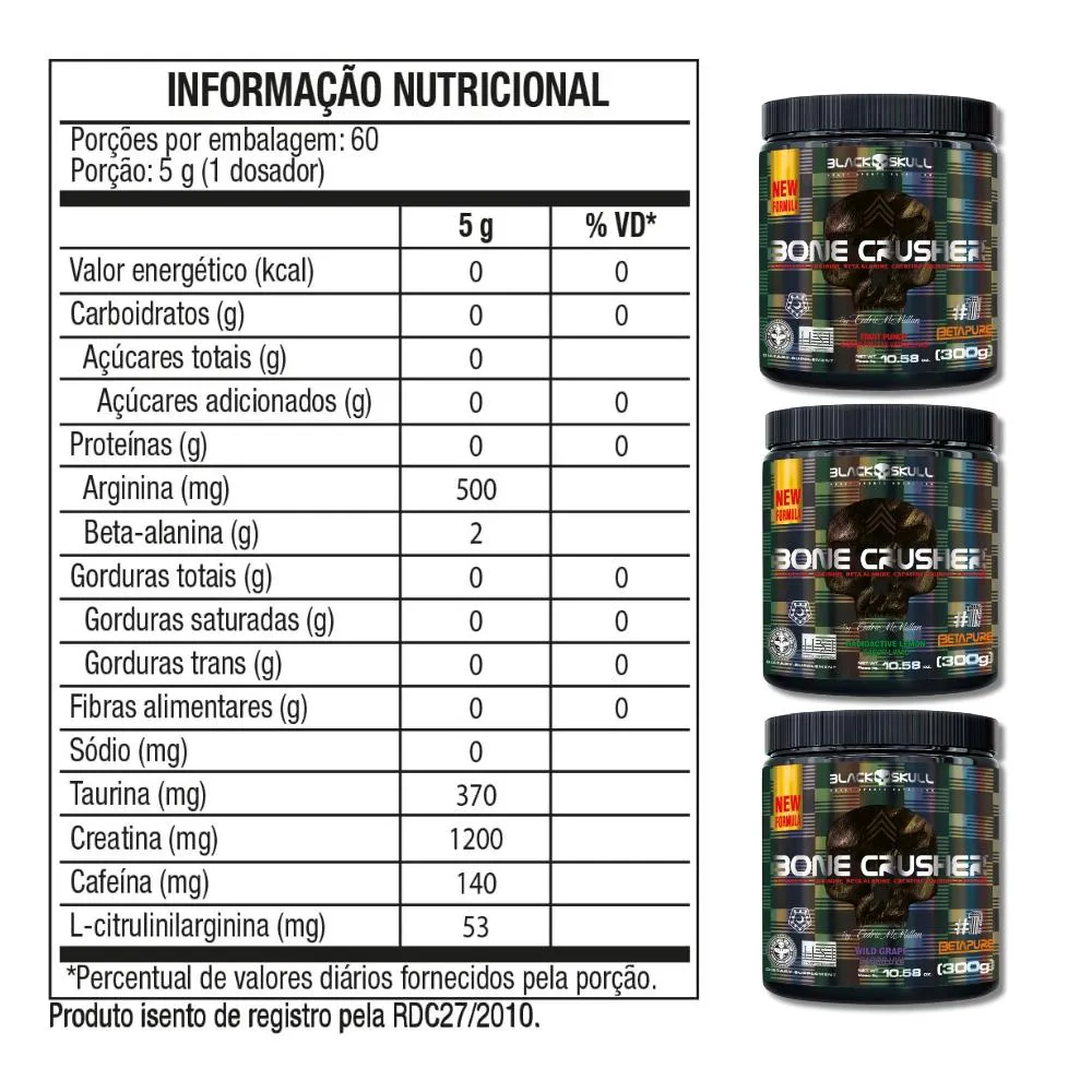Pré-Treino Bone Crusher 300g Black Skull – Frutas Vermelhas