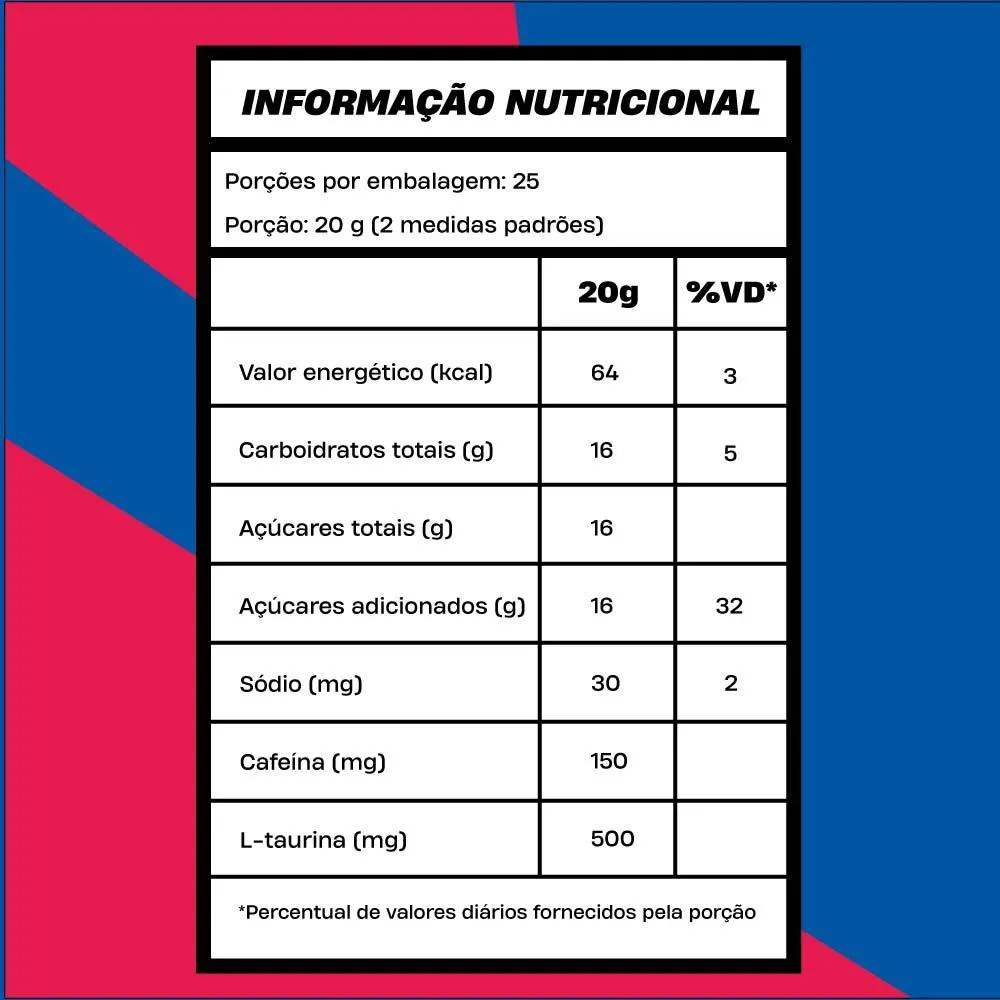 Cada pote vem com 300g de Pré-Treino Exquenta +Mu Performance sabor Amora!