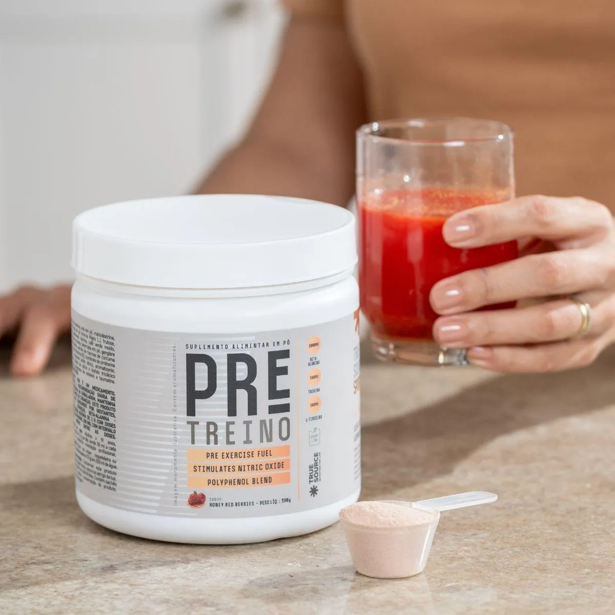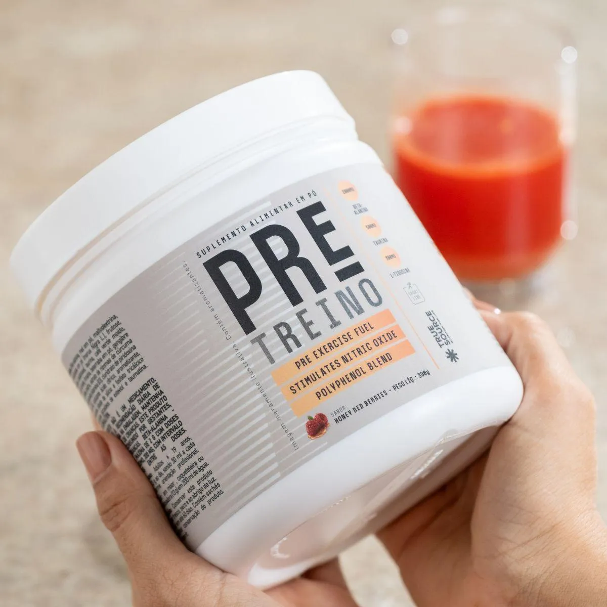 A composição reúne ingredientes amplamente utilizados em suplementos pré-atividade, mantendo um perfil clean e sem adições desnecessárias. A True Source prioriza matérias-primas com boa procedência, reforçando sua proposta de transparência e qualidade. A embalagem de 390g oferece rendimento suficiente para um mês de uso regular, e o formato em pó permite ajustar a porção conforme as preferências individuais, adaptando o consumo ao estilo de vida de cada pessoa.