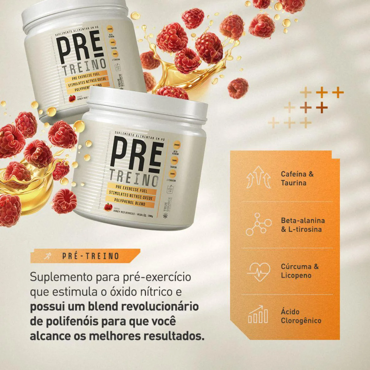 Os diferenciais do Pré Workout Beta destacam o cuidado da True Source em proporcionar uma experiência agradável e prática. A fórmula equilibrada atende consumidores que buscam simplicidade, enquanto o sabor leve e a textura fina reforçam a sensação de um suplemento moderno e fácil de incorporar à rotina. Além disso, a marca se destaca por seu compromisso com clareza, evitando excessos e mantendo foco no essencial: qualidade, sabor e facilidade de uso.