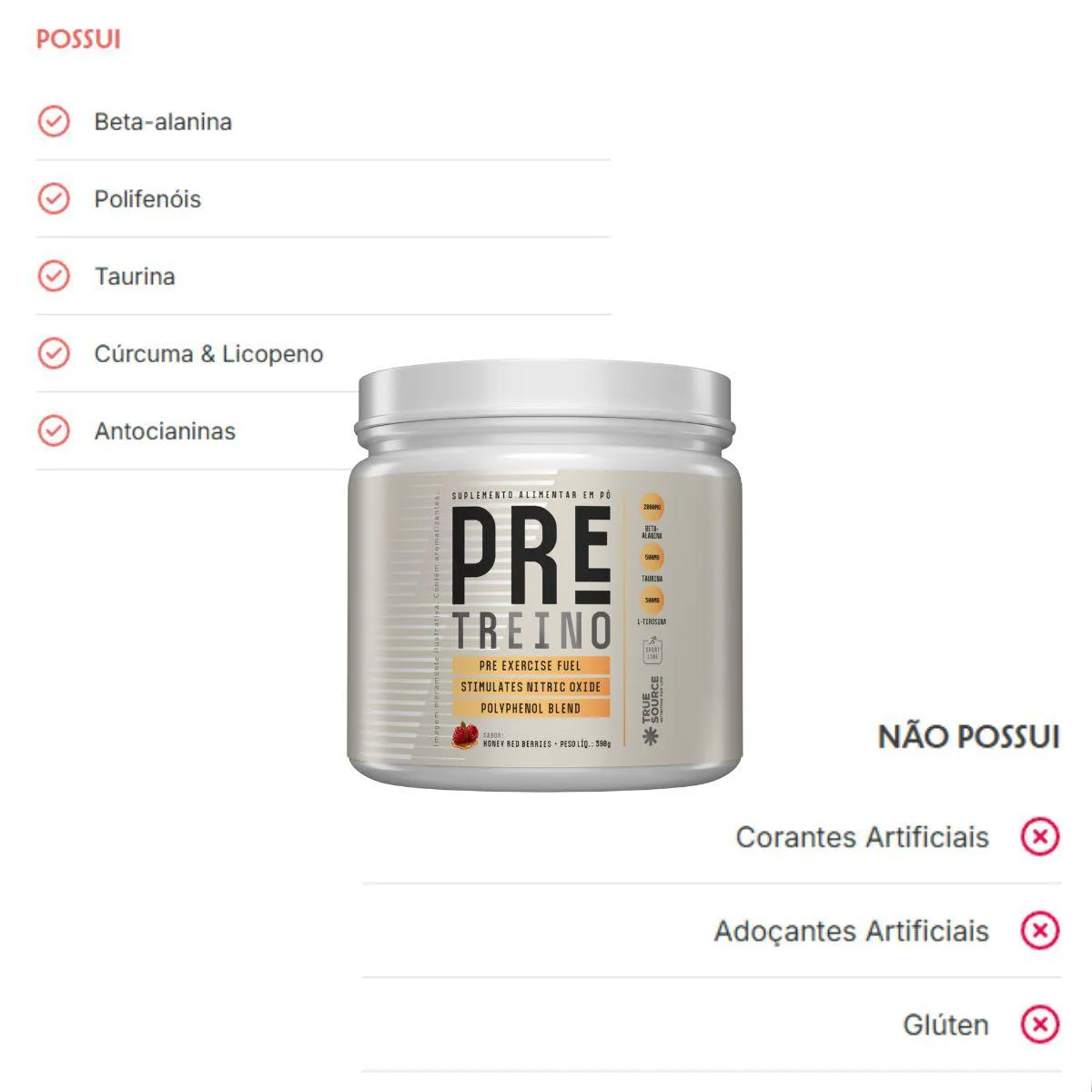 Pré Workout Beta 30 Doses 390G True Source Honey RED Berries